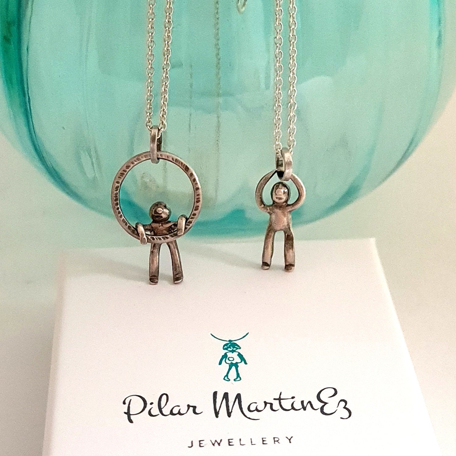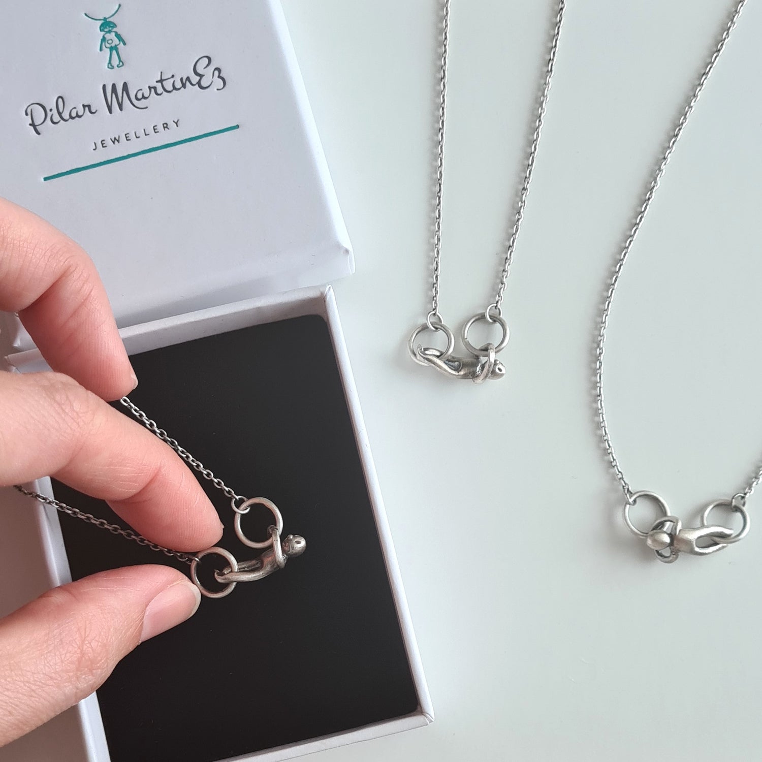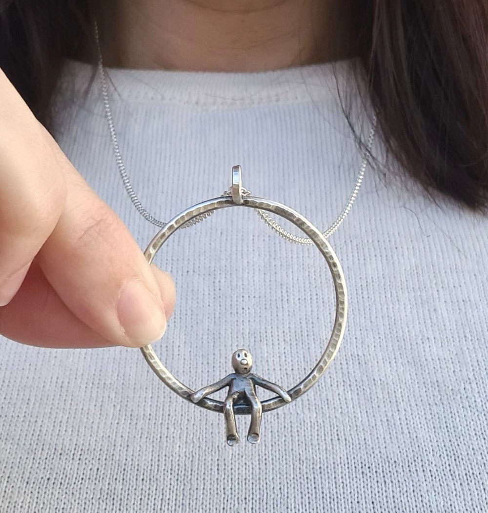 Cute Little Man Sitting On a Silver Ring - Minimalist Pendant